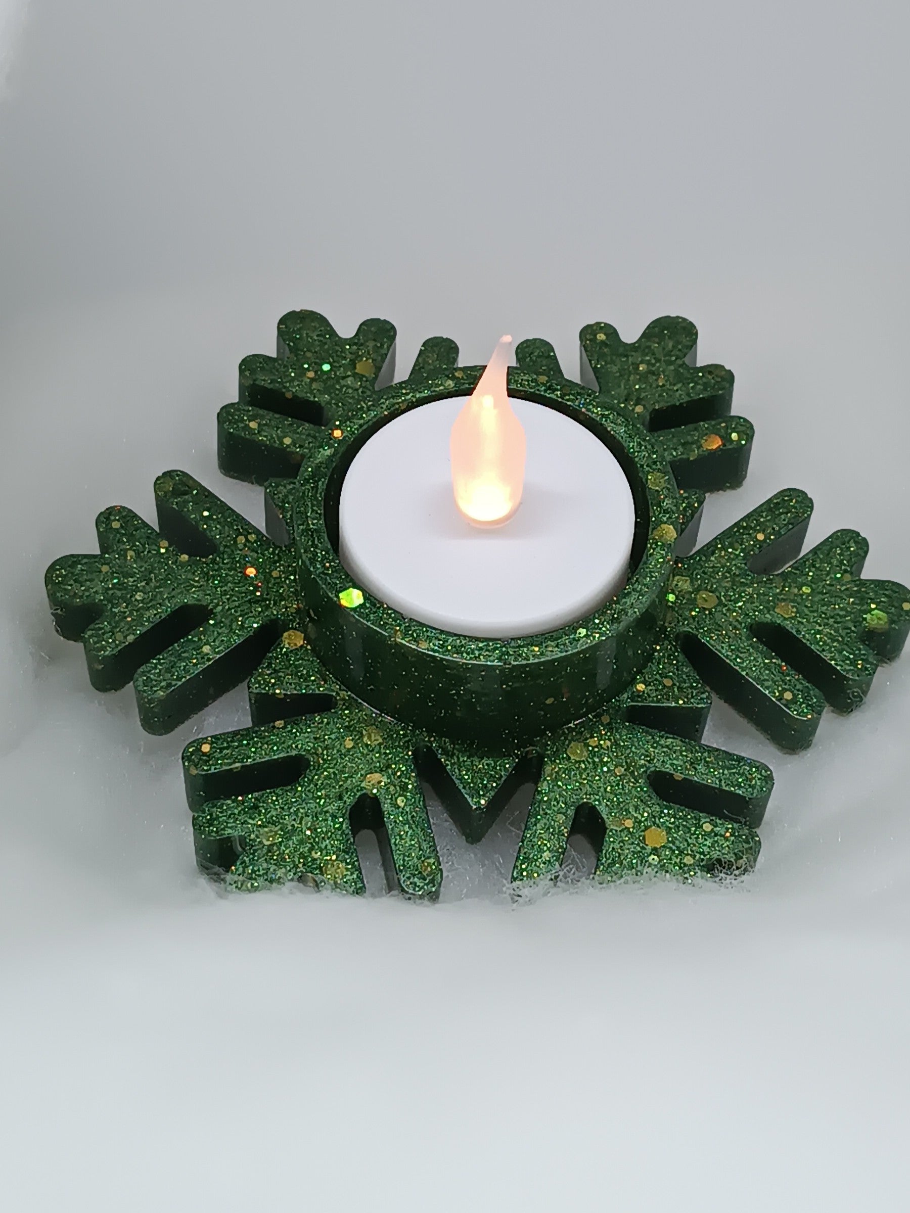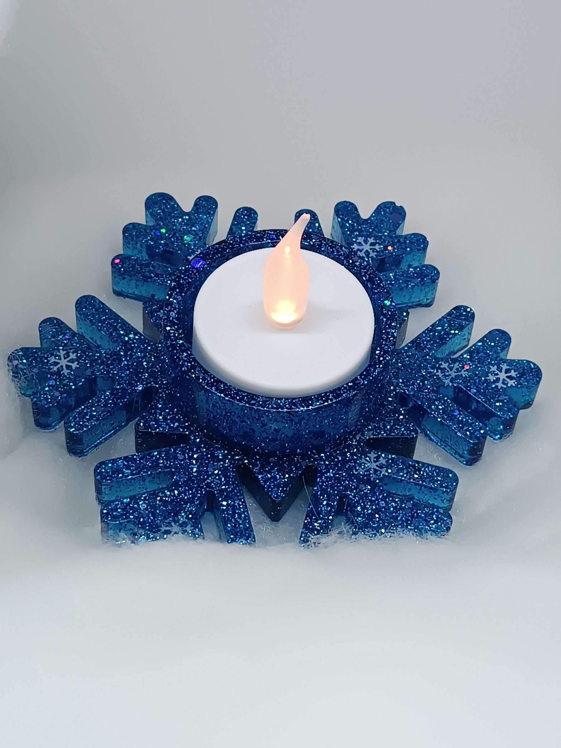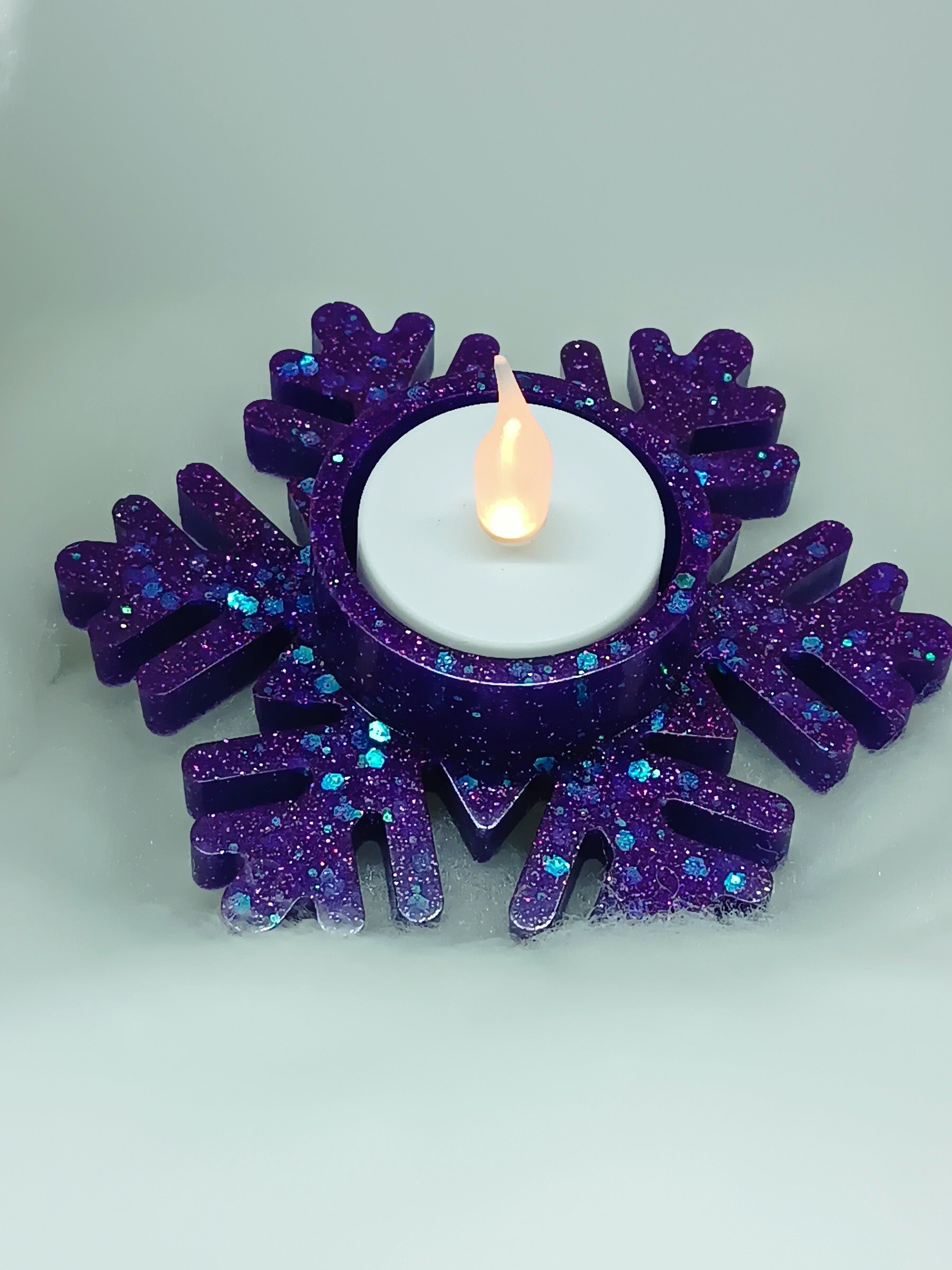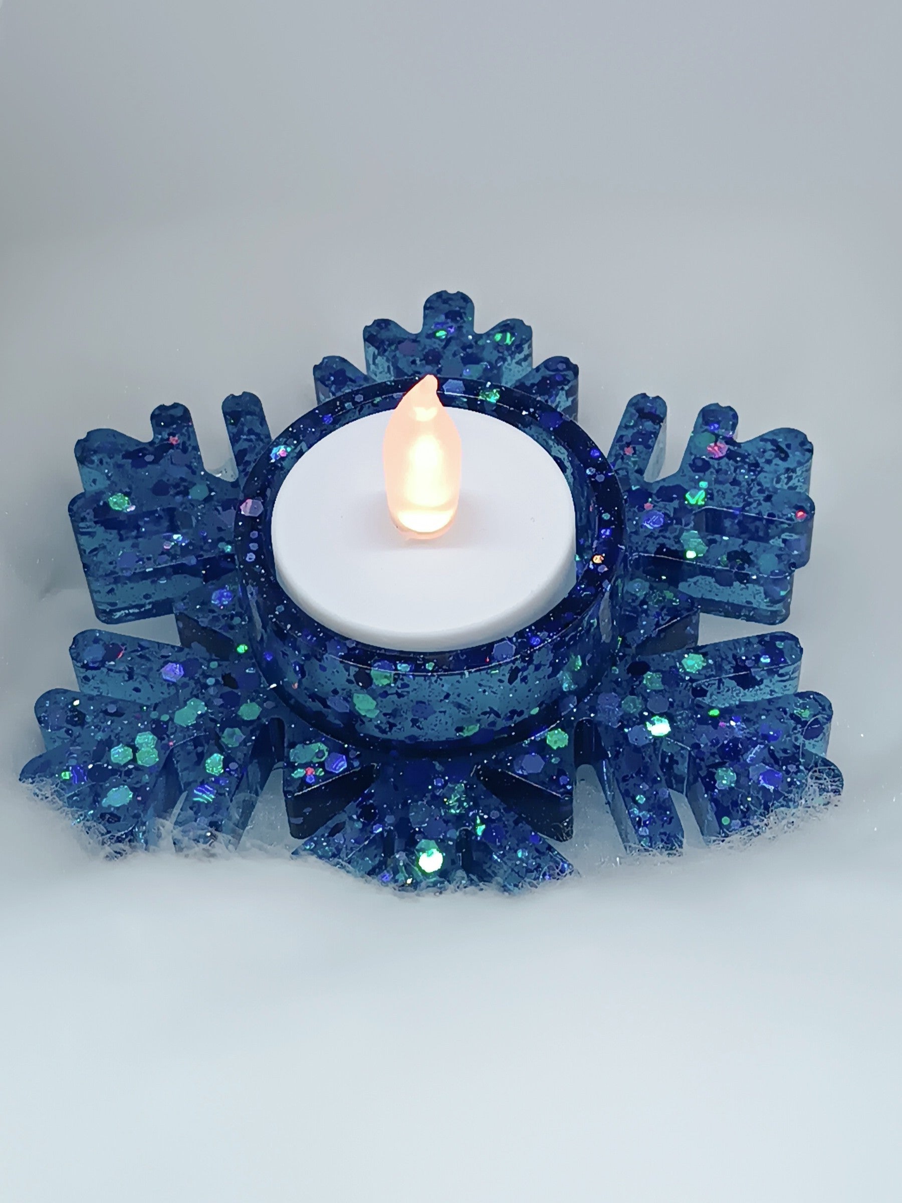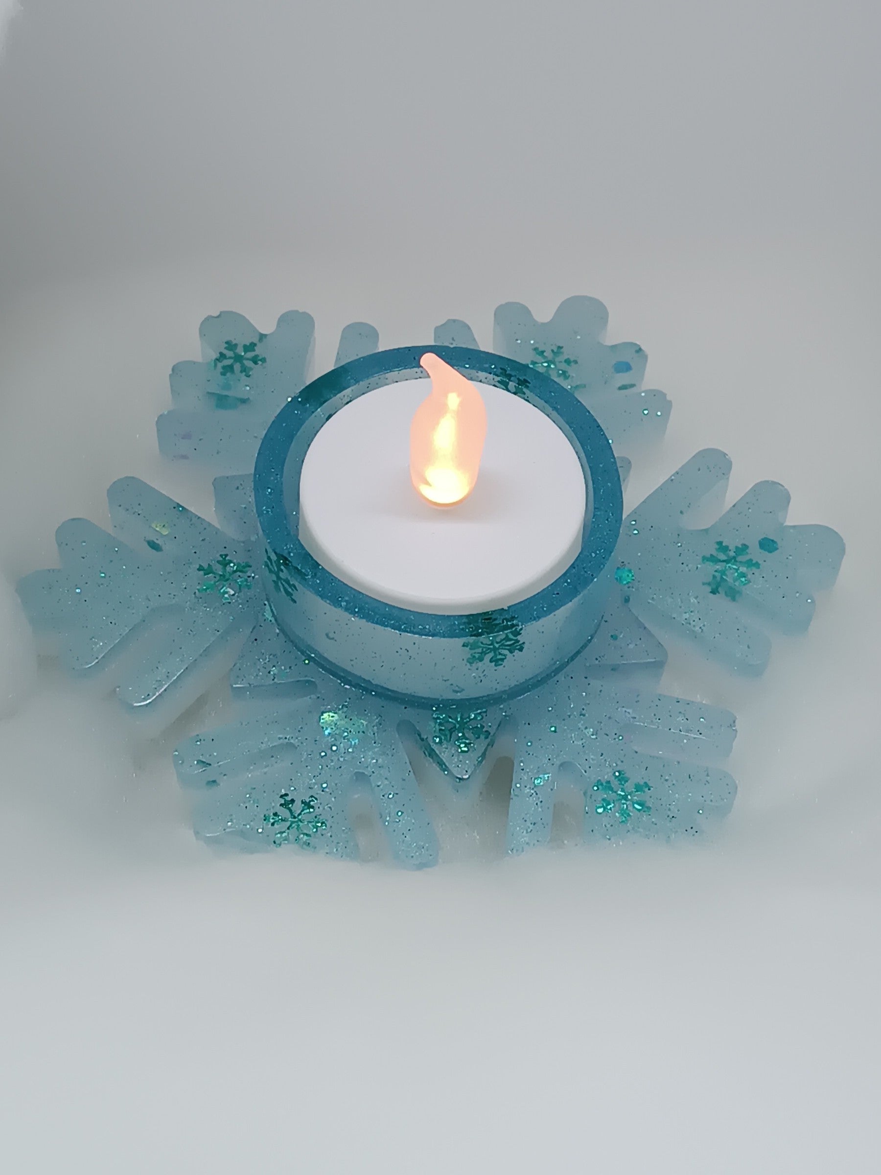 Apportez une touche lumineuse et hivernale à votre intérieur avec ce bougeoir en résine en forme de flocon de neige, idéal pour une bougie chauffe-plat.