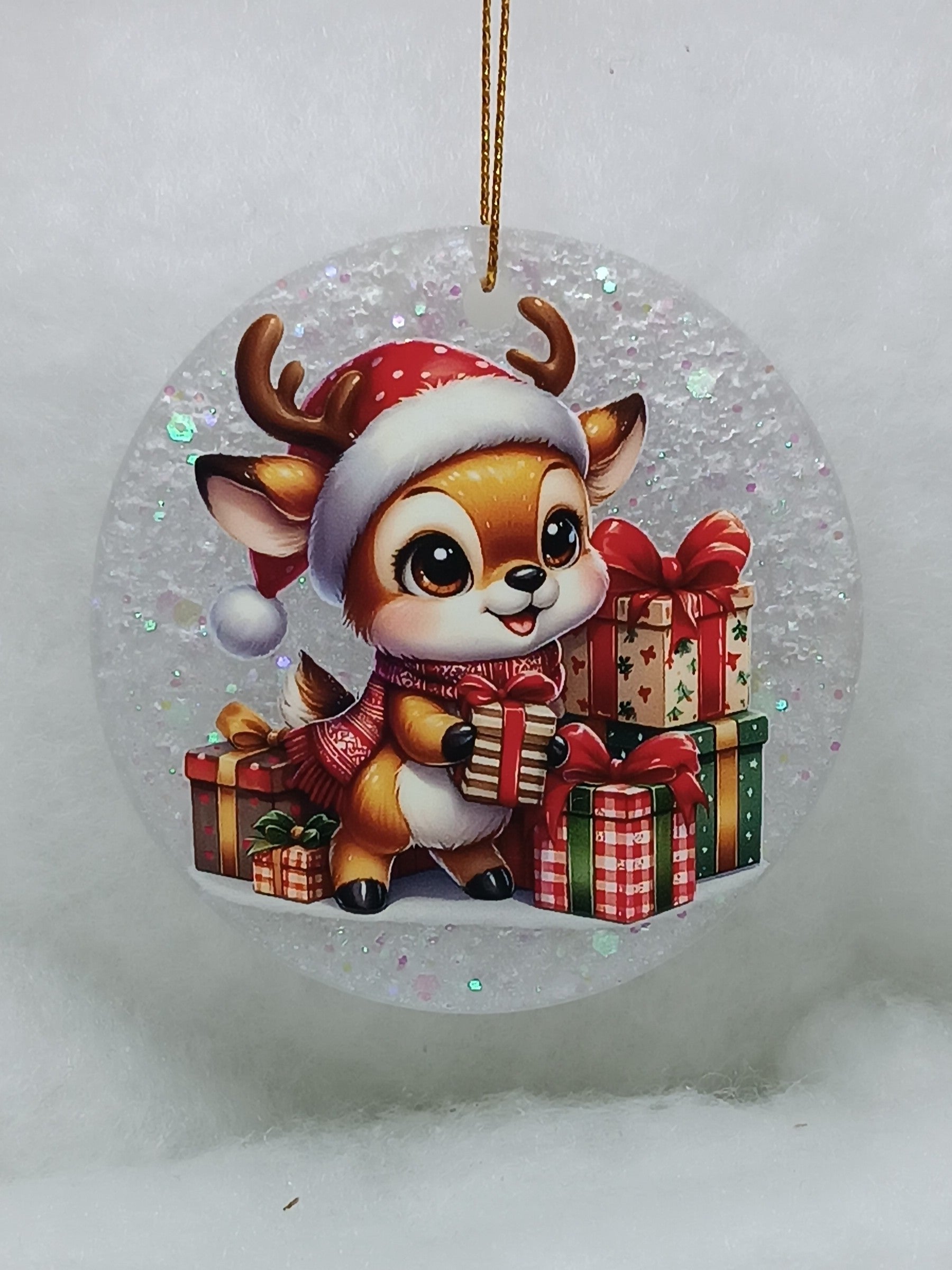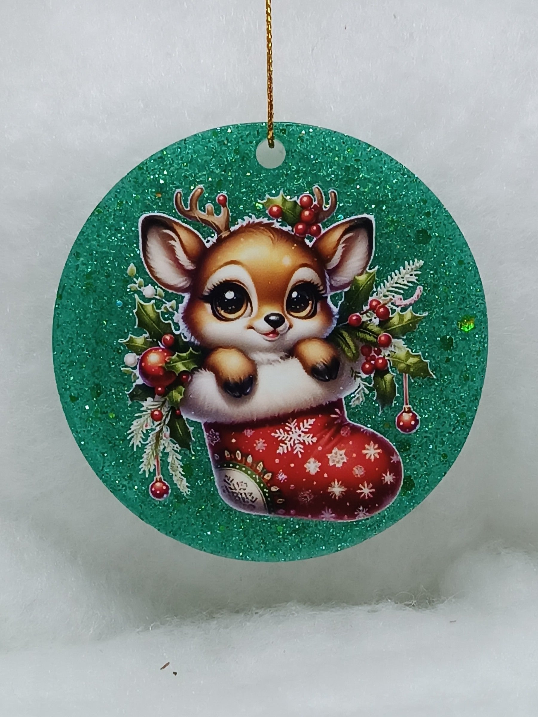 Apportez une touche festive et chaleureuse à votre sapin avec cette jolie suspension ronde avec un sticker de renne. Fabriquée avec soin, elle est parfaite pour une déco de Noël traditionnelle ou moderne.
